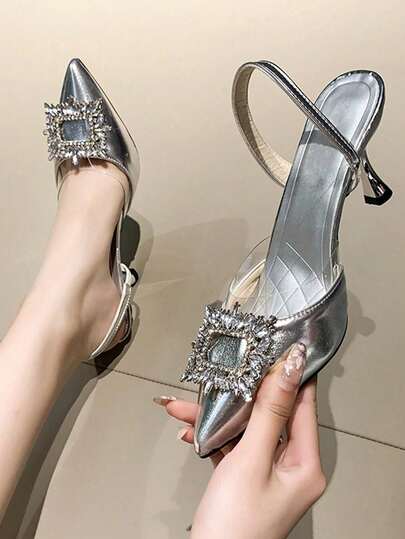女士高跟鞋 - 銀色 - 查看 4
