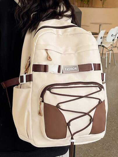 女士經典時尚背包,具有大容量和多種功能,適用於學校、學院、度假和旅行 - 白色 - 查看 1
