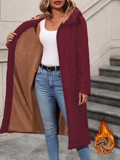 SHEIN LUNE 女士羊毛连帽加厚棉服外套冬季 - 彩色 - 查看 1