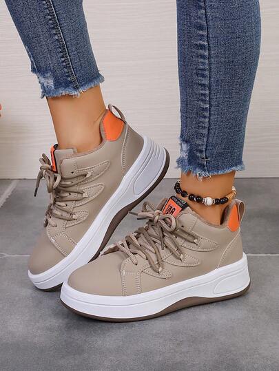 女士戶外休閒鞋,春/秋,時尚交叉纏繞高筒保暖鞋 - 卡其色 - 查看 1