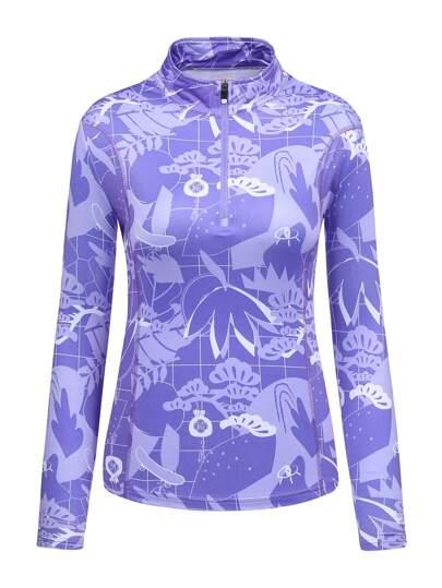 女款快乾長袖t卹適合健行登山運動等戶外活動透氣防曬春夏 - 紫色 - 查看 1