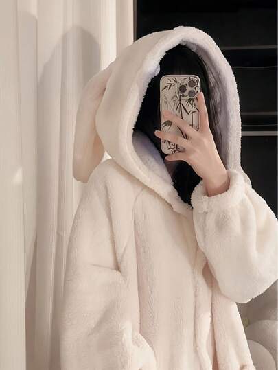 女士冬季睡袍 - 带兔耳朵的毛绒连帽浴袍、厚实保暖睡衣、女士舒适家居服、可爱兔子服装派对装、易于护理的奢华水疗和家居睡袍、女士浴袍、寒冷天气家居服、俏皮设计、柔软质地、舒适穿着、保暖睡衣、卡通风格设计、耐用结构、成人睡衣、睡衣、动物睡衣、冬季睡衣、女士睡衣、女士睡袍、女士睡袍 - 彩色 - 查看 9