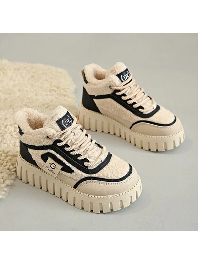 女款冬季加厚絨面雪地靴,暖和的戶外運動鞋,百搭的女式短靴 - 黑色 - 查看 1