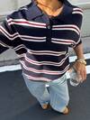Muchica 女士条纹 Polo 领宽松针织短袖毛衣