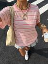 SHEIN 女士休闲纯色侧抽绳短袖T恤,夏季