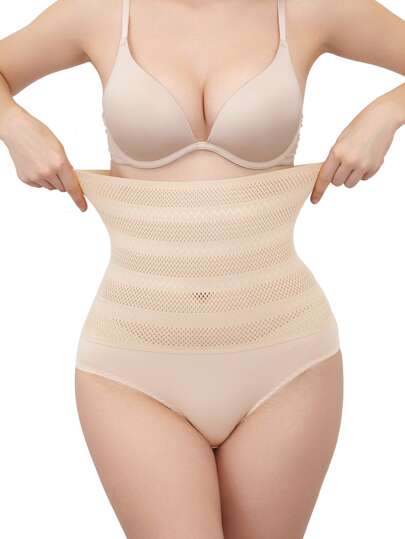 拼接網紗塑形三角褲 - 杏色 - 查看 1