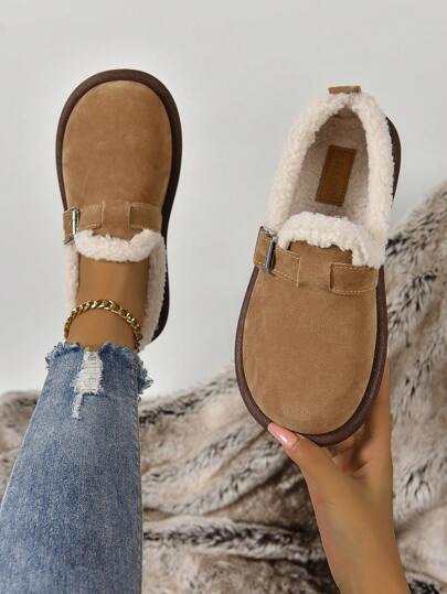 女性秋天&冬天長毛絨拖鞋,平底樂福鞋,穆勒鞋&洞洞鞋 - 棕色 - 查看 4