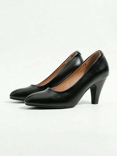 女士黑色職業鞋,適用於面試、空服員和公務員,圓頭舒適滑入式鞋面,柔軟大底,顯專業