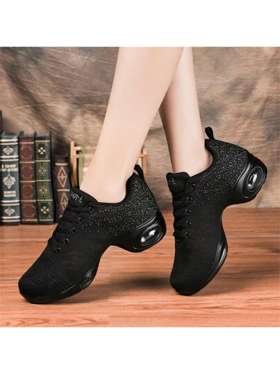 女士舞蹈鞋,网眼透气广场舞鞋,时尚软底健身瑜伽鞋,四季系带舞蹈鞋 - 黑色 - 查看 1