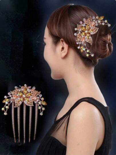 女士优雅水晶花朵发梳,发饰,新娘发夹,发髻器,侧梳,头饰,女士发饰 - 香檳色 - 查看 1