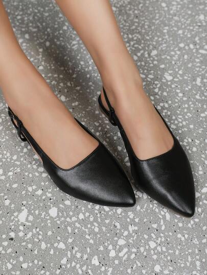 女性優雅&簡約風&舒服的&時尚尖頭平底鞋在歐美風格 - 黑色 - 查看 1