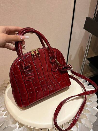 女士时尚简约手提贝壳包 简约流行单肩包 休闲斜挎包 送给妈妈的礼物 - 紅色 - 查看 6