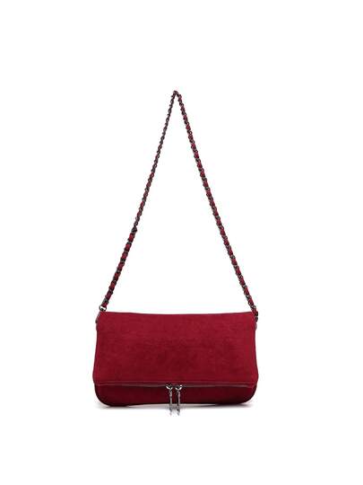 女士时尚酒红色单肩包 - 可转换成腋下包、斜挎包、手拿包,配有撞色链条肩带和双拉链,采用柔软奢华的PU材质,小巧却容量充足,可装下手机/钱包/化妆品,可调节链条肩带(适合腋下、斜挎、单肩背) - 酒紅色 - 查看 1