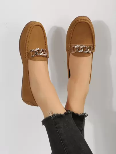 女士平跟一脚蹬休闲鞋,舒适软底乐福鞋,护士鞋,时尚百搭轻便妈咪鞋 - 棕色 - 查看 1