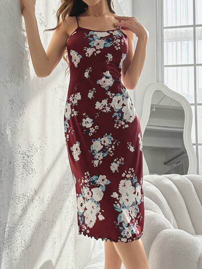 女士花卉印花細肩帶長裙 - 紅色 - 查看 1