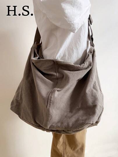 超大号灰色水洗复古帆布手提包,休闲百搭拉链开合单肩包,适合日常使用、学校、大学、旅行、街头服饰、可折叠设计 - 灰色 - 查看 1