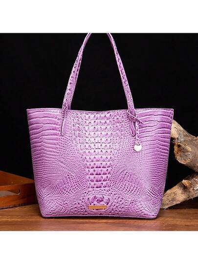 Women's Shoulder Bag European And American Style Crocodile Print Tote Bag Blue Large Capacity Commuter Tote Bag With Coin Purse Blue Crocodile Leather Tote Bag Large-Capacity Mother-In-Law Bag Fashionable And Versatile Handbag