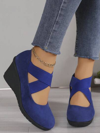 女士春秋新款圓頭t型帶平底鞋,高跟,舒適,時尚,多功能楔形鞋底,大碼碼數 - 紫色 - 查看 6
