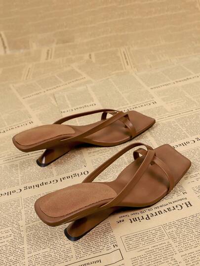 女士方头高跟人字拖,棕色休闲夏季拖鞋 - 棕色 - 查看 1