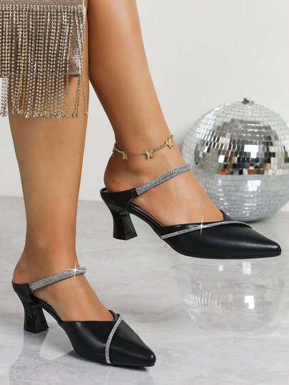 女士铆钉中跟尖头凉鞋,日常穿着的便鞋 - 黑色 - 查看 1
