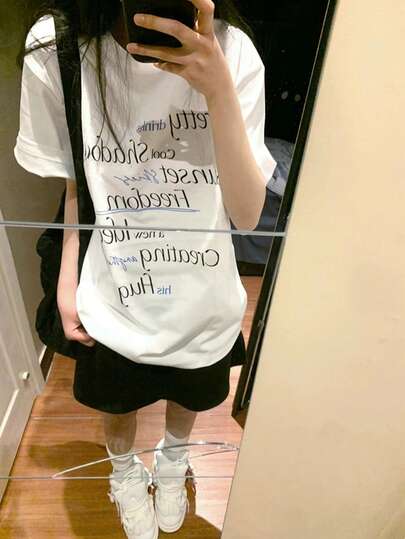 女士 Y2K 休闲白色字母印花宽松短袖 T 恤 - 夏季街头风图案 T 恤,宽松版型上衣,酷炫的自由精神美学 - 白色 - 查看 10