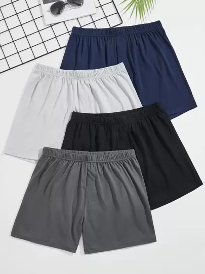 男士4件套素色平角內褲 - 彩色 - 查看 4