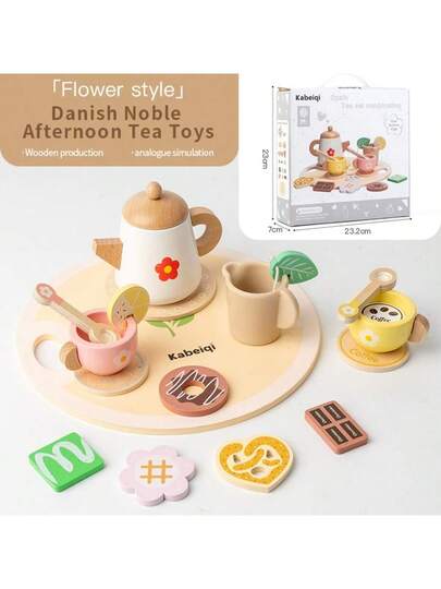 木制美式仿真下午茶套装厨房过家家茶壶套装,男孩女孩益智玩具 - 彩色 - 查看 1