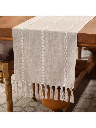 Wracra Rustic Linen Table Runner Farmhouse Style Table Runners 72 Inches Long Embroidered Fall Table Runner With HandTassels For Party Dresser And Dining Room Decorations Light Coffee 13*72