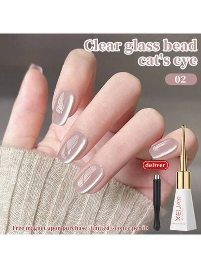 XEIJAYI 1支装 10毫升 玻璃珠全息闪粉猫眼磁性指甲油凝胶 磁性银河效果凝胶指甲油 可卸UV LED指甲油 家用美甲沙龙DIY美甲 - 含磁性棒 - 杏色 - 查看 4