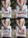 复古教师主题帆布手提包,教师答谢礼物,休闲购物手提包,升级肩带,适合上学、工作、旅行和日常使用的手提包,适合各个年龄段