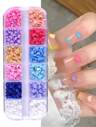 12 格粉色红色水钻雪花混合可爱指甲饰丝带蝴蝶结圣诞美甲设计月亮星星宝石白珍珠美甲装饰套装节日美甲沙龙 DIY 用品