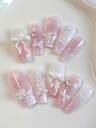 这款清爽甜美的夏日美甲套装包含10片短款椭圆形压片甲片。设计以纯净透明的白色为主色调,点缀着银色线条、星星、小钢珠等闪亮元素。此外,还有立体白色翅膀和可爱蝴蝶结,赋予美甲甜美优雅的气质,提升整体造型的精致感和美感。可重复使用。美甲用品