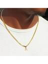 1 件简约经典镂空双心形字母金色不锈钢珠链女式脚链