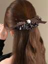 1 件优雅灰色波尔卡圆点蝴蝶结发夹,精致马尾发饰优雅爪夹冬季发夹