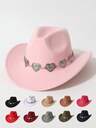 1 件木珠装饰刺绣帽,简约牛仔帽,适合日常佩戴、生日派对、聚会、西部主题活动、音乐节