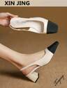 Xin Jing Shoes 女士时尚撞色中跟鞋,百搭套脚鞋,优雅