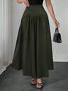 通勤/约会/休闲百搭的灰色纯色飘逸长裙,裙摆采用褶裥设计,并配有口袋,适合日常穿着。