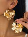 一套时尚复古几何3D花卉水钻手链、手镯、戒指首饰套装,女士礼物