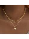 1入新款經典不鏽鋼首字母吊墜金色分層鍊女士項鍊