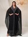 YISIKADO 女士端庄长袍串珠雪纺舞会礼服连帽星星图案女士连衣裙阿拉伯风格长裙节日土耳其风格卡夫坦阿拉伯连衣裙