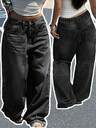 美式复古街头风女式牛仔裤,欧美嘻哈风无弹力直筒牛仔裤