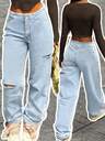 女式 Y2K 休闲破洞直筒牛仔裤,度假风格,秋季
