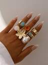 14 件/2 套时尚简约优雅复古不对称几何液体厚实个性鸡尾酒戒指套装,适合节日海滩派对约会日常佩戴的礼物
