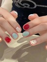 24入短方形卡通可愛美甲貼片附帶1支美甲文件和1管果凍膠,即貼美甲,美甲用品