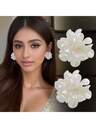 1 对白色花朵、人造珍珠和流苏装饰耳坠,适合婚礼、波西米亚风、万圣节、情人节
