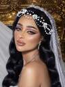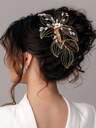 1件合金花叶仿珍珠优雅发梳,时尚配饰,适合婚礼、聚会、派对、舞会等场合