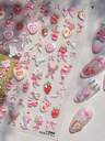 1 件 5D 金属美甲贴纸精致蝴蝶结樱桃指甲贴纸自粘纸适用于 DIY 美甲配件