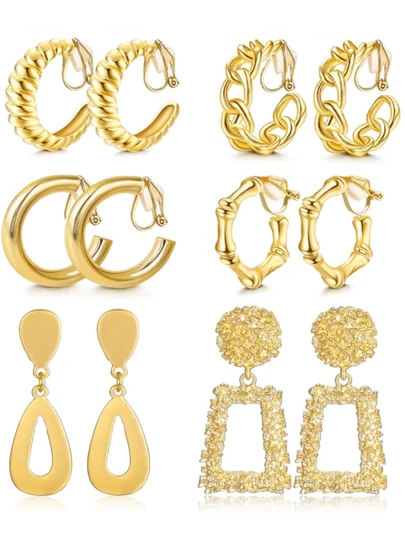 Yanxyad 1/6对女士夹式耳环,夸张几何造型耳环,闪亮水滴形耳环,无需耳洞 - 金色 - 查看 6