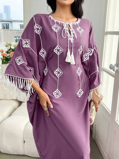 Yasmyna 女士流苏土耳其长裙,传统阿拉伯长袍 - 紫色 - 查看 1