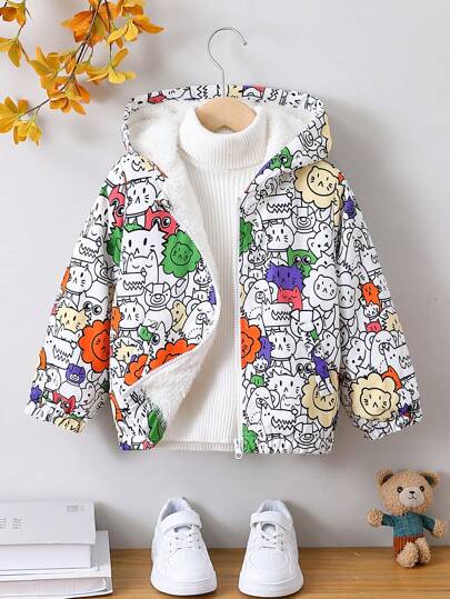 男小童字母和卡通圖案拉鏈開襟連帽加絨內裏夾克無毛衣 - 彩色 - 查看 1